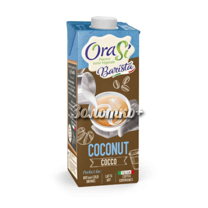 Напій Орасі Бариста Кокос – готовий дієтичний напій цікавий не тільки вегетаріанцям та веганам, але також любителям здорового способу життя, людям, які уважно ставляться до свого здоров’я, які сьогодні запитують смачне та гарантовано здорове харчування. Завдяки природній відсутності глютена та лактози підходить для хворих на целіакію та для людей з непереносимістю молочного білка. 100% італійський продукт. Контрольований ланцюжок якості під час виготовлення. Короткий список інгредієнтів, джерело кальцію та вітамінів D та В12. М’який смак та аромат, приємна вершкова текстура.Завдяки м’якій, кремовій, якісній піні ідеальний для приготування безлактозних кавових напоїв, як вегкапучіно, латте тощо.OraSì Barista підходить також для кавових автоматів.Упакування: тетрапак. Об’єм: 1 л.У коробі 12 упаковок-тетрапак.Термін зберігання: 24 місяців при температурі трохи більше 18-20С. Відкрите впакування зберігати в холодильнику не більше 4 діб.Країна походження: Італія.