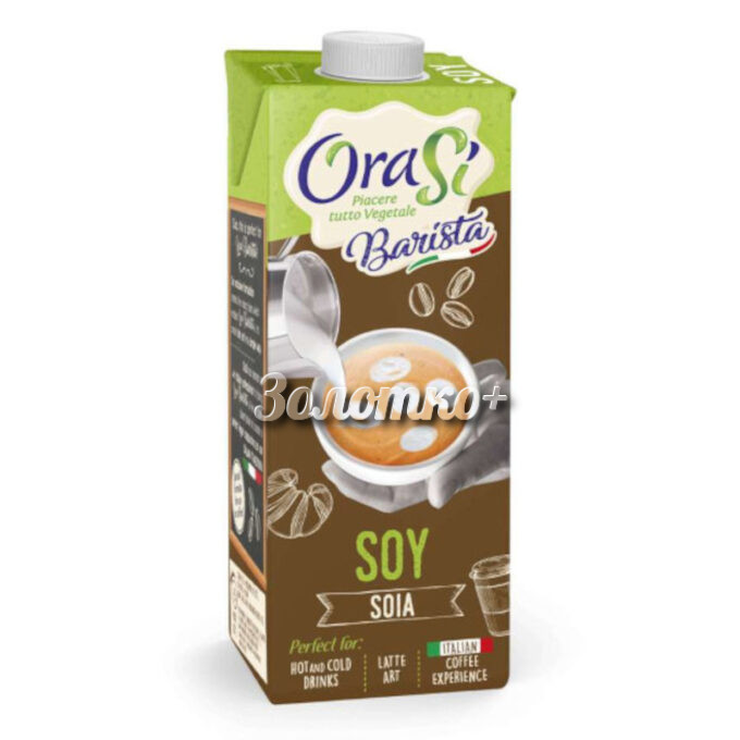 Напій Орасі Бариста Соя т.м. Master Martini OraSi Soia (ОраСі Соя). Він виробляється з соєвих бобів найвищої якості. Напій, збагачений вітамінами Е, В2, D та B12 та кальцієм. Не містить ГМО, глютена та лактози. Підходить для веганів. Область застосування: готовий продукт підходить для використання в кулінарії, для виготовлення кондитерських виробів. Ідеальна заміна для молока у каві.Харчова цінність на 100 гБілки 3,3 гЖири 1,8 г 0.3Вуглеводи 3,2 г 3.1Калорійність 44 ккалСкладВода, соєві боби, цукрова тростина, карбонат кальцію, стабілізатори, камедь бобів ріжкового дерева, гелланова камедь, морська сіль, натуральні ароматизатори, вітаміни (Е, В2, D, В12).Жирність 1,8%Смак НатуральнийОб’єм 500 млУмови зберіганняПри температурі від +2°C до +10°CТермін зберігання: 12 місяців